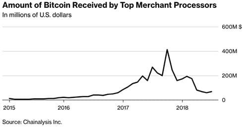 Bitcoin's use in Retail TransactionsA trend has emerged since Bitcoin went on its remarkable price rally at the end of 2017. Around the same time that prices were going up, Bitcoin’s use in retail transactions went down. This makes sense: Bitcoin was becoming more valuable every day.
