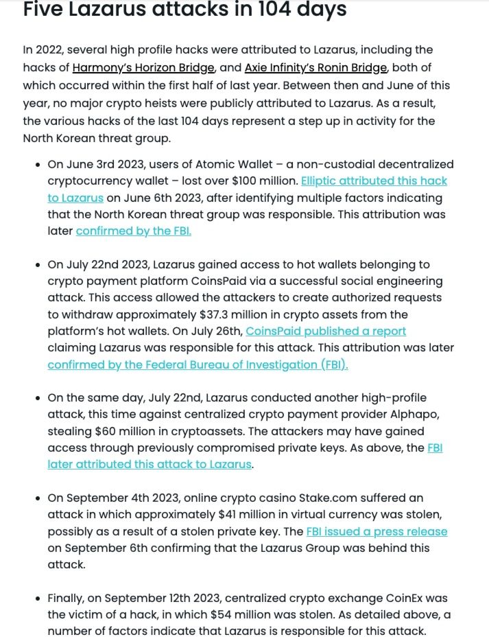 The Lazarus Group Have Been Behind Some of the Largest Hacks in Crypto. Image via elliptic.coNot-So-Fun Fact!- South Korean crypto exchange Upbit was reported to have been targeted by hackers more than 159,000 times in the first half of 2023, an increase of 117% from the previous year.