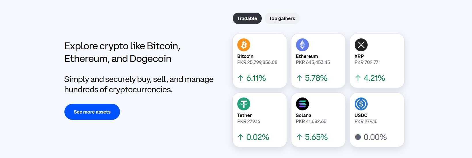 Coinbase is One of the Most Beginner-Friendly Crypto Exchanges. Image via CoinbaseCoinbase is one of the most beginner-friendly crypto exchanges, known for its simplicity, regulatory compliance, and strong security. It’s a great starting point for newcomers to altcoin trading. Coinbase supports hundreds of cryptocurrencies.