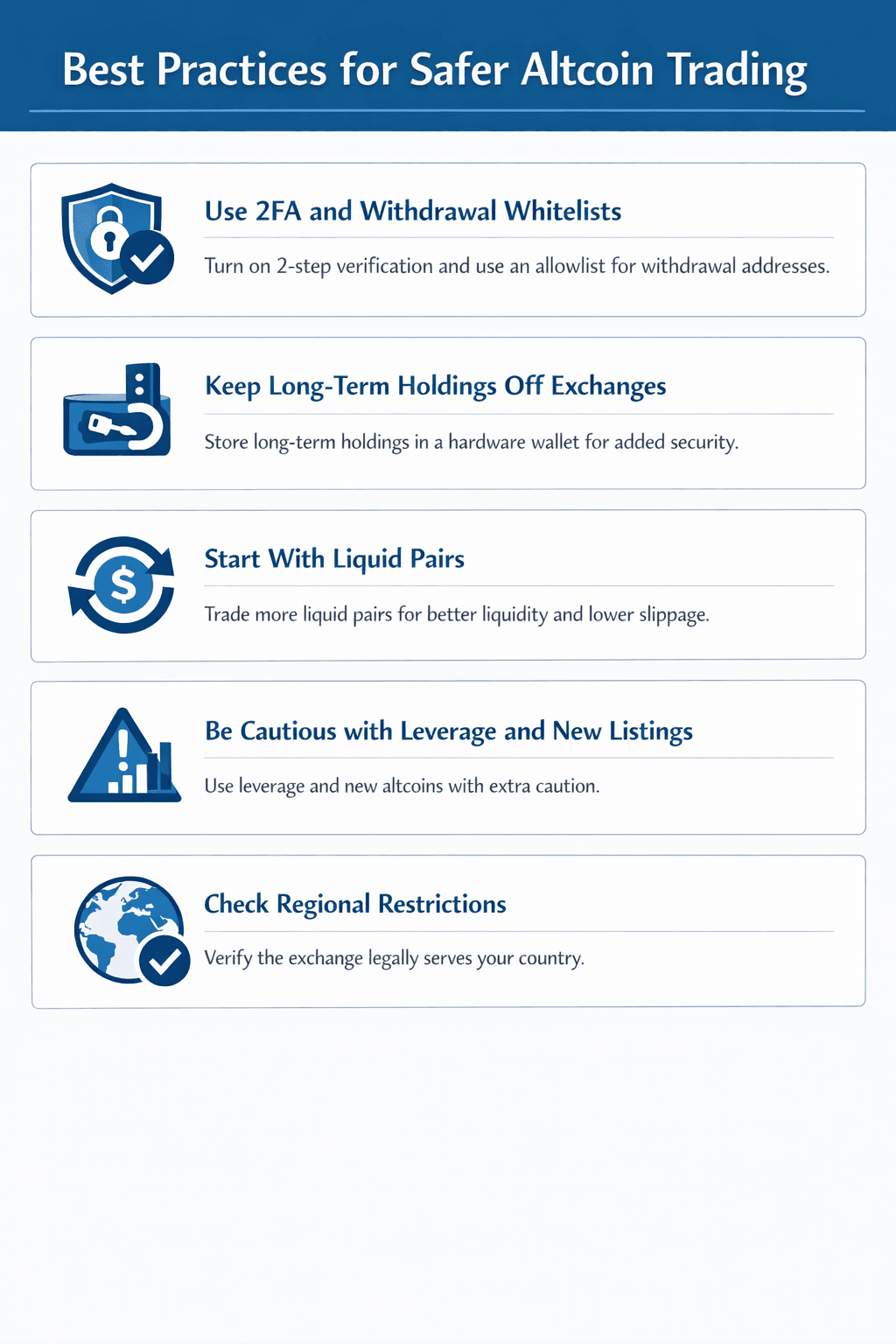 Safer altcoin trading is mostly about reducing avoidable mistakes. The goal is not to remove all risk, because that is impossible, but to avoid turning a normal trade into a preventable loss through weak security, poor liquidity, or too much leverage.