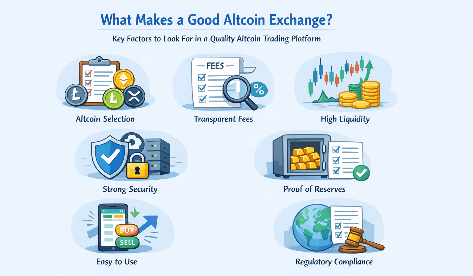 A good altcoin exchange does more than list lots of coins. The strongest platforms combine broad market access with transparent costs, reliable execution, strong security, and support for your region. In other words, the best exchange is the one that lets you trade altcoins efficiently without adding avoidable friction or risk.