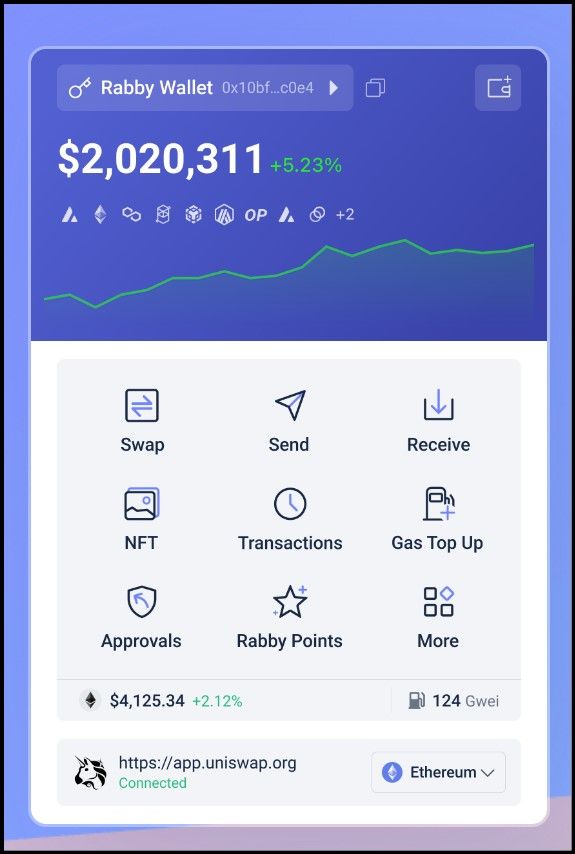 - Multi-Chain Support: Rabby Wallet is designed to automatically select the correct blockchain when you visit a DeFi app, providing a seamless user experience and enhancing usability.