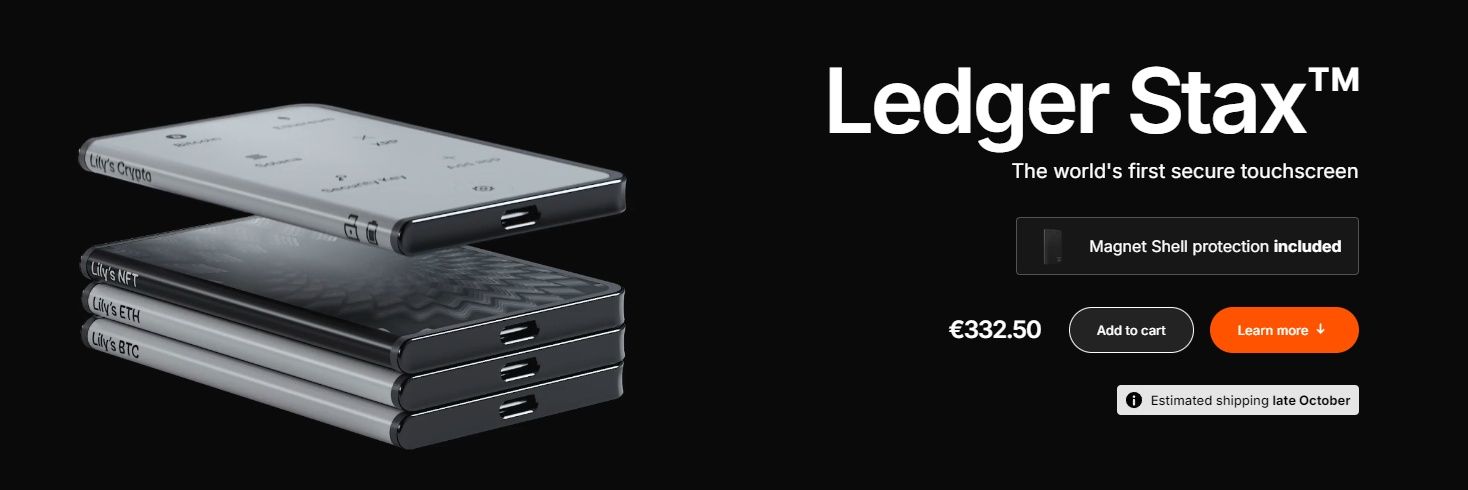 | Ledger Stax | $399 | E-ink display, Stackable, USB-C, Wireless charging, 5,500+ crypto support | Long battery, Stylish, High compatibility | Expensive, Bluetooth raises concerns |