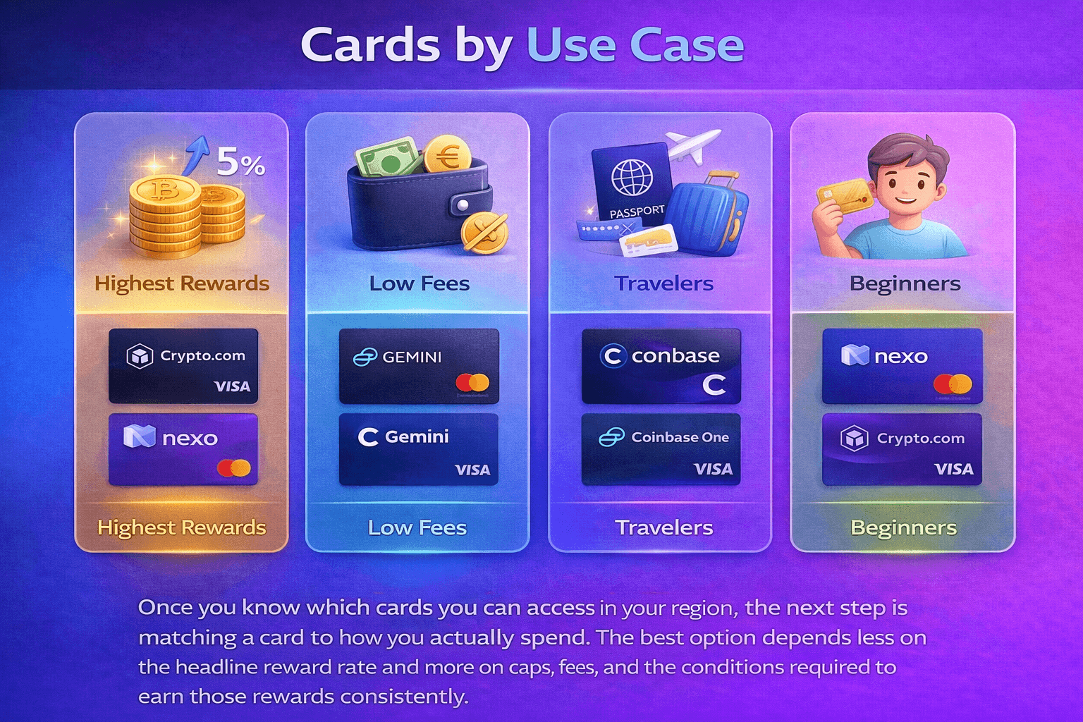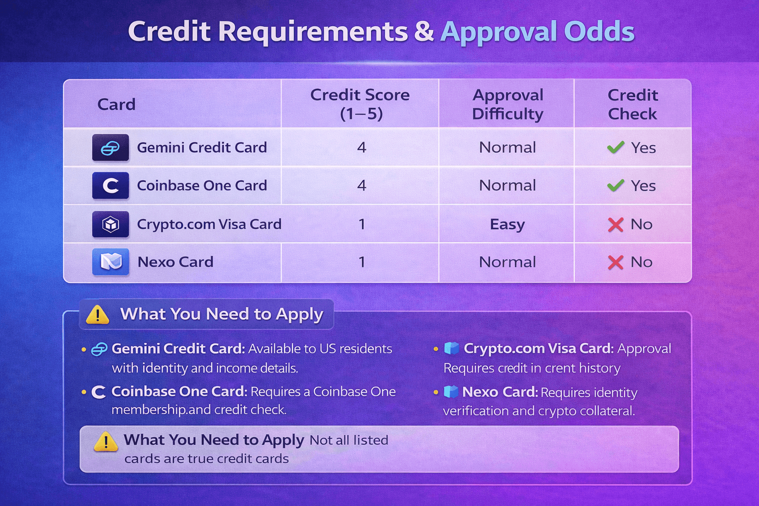 - US: Gemini Credit Card and Coinbase One Card become realistic options (traditional underwriting applies).