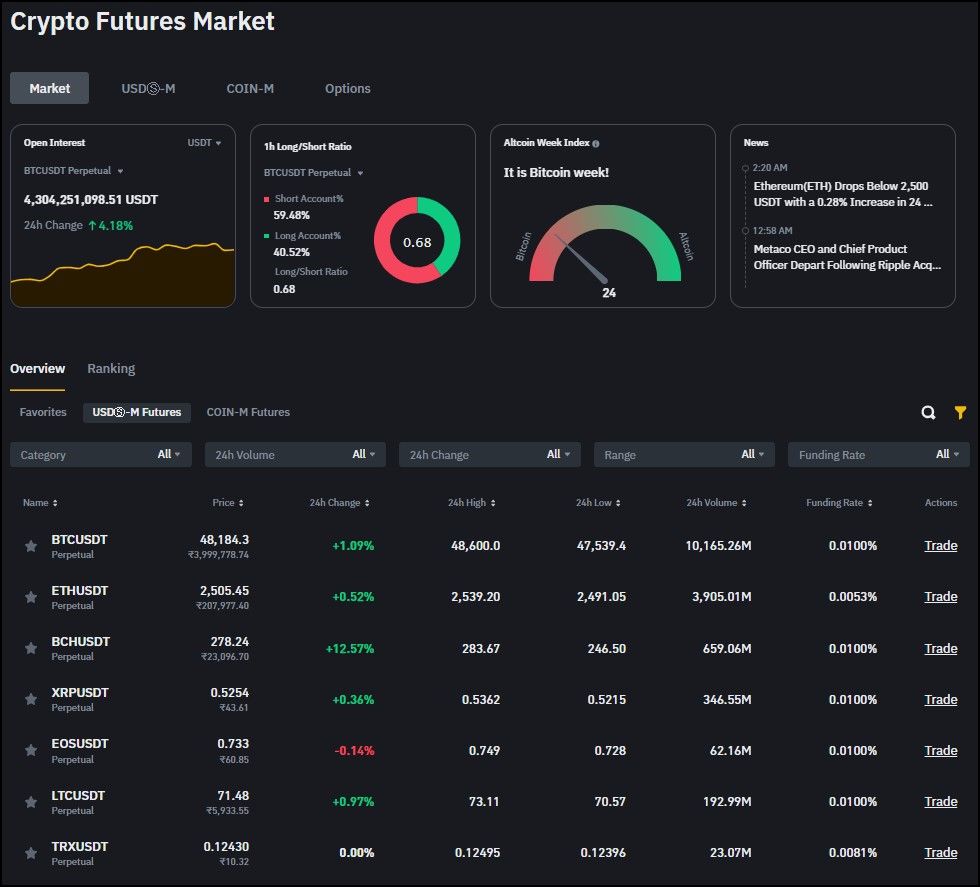 - Open Interest (Liquidity): Binance excels in liquidity, boasting high open interest across various derivatives products. Ample liquidity ensures traders can execute large orders with minimal slippage, making it an ideal platform for retail or institutional traders.