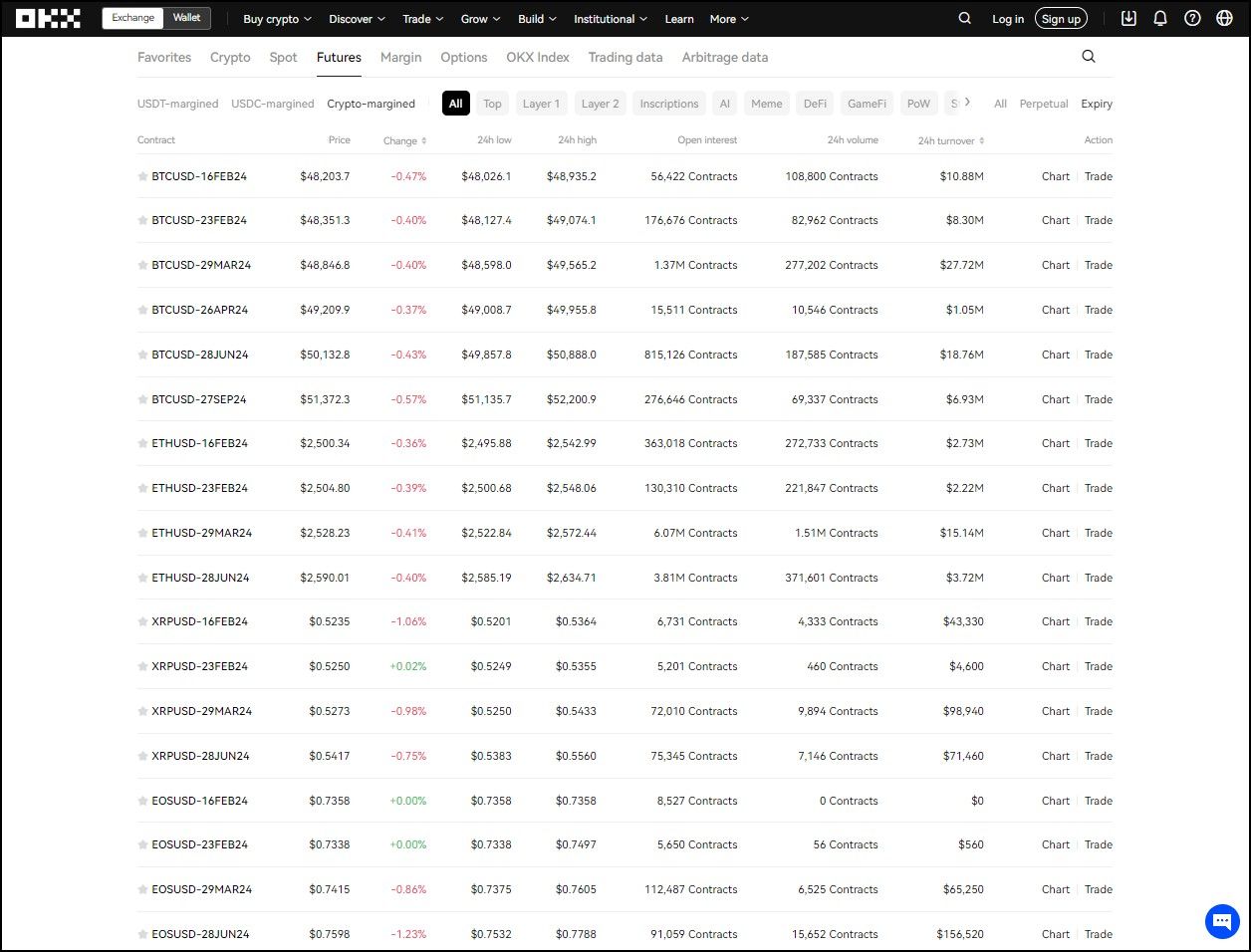 - Open Interest (Liquidity): OKX consistently ranks high in terms of open interest for crypto derivatives, showcasing its position as one of the leading platforms for liquidity. With billions of dollars in open interest across various contracts, OKX facilitates efficient trade execution, even for large orders, minimizing slippage and ensuring competitive pricing.