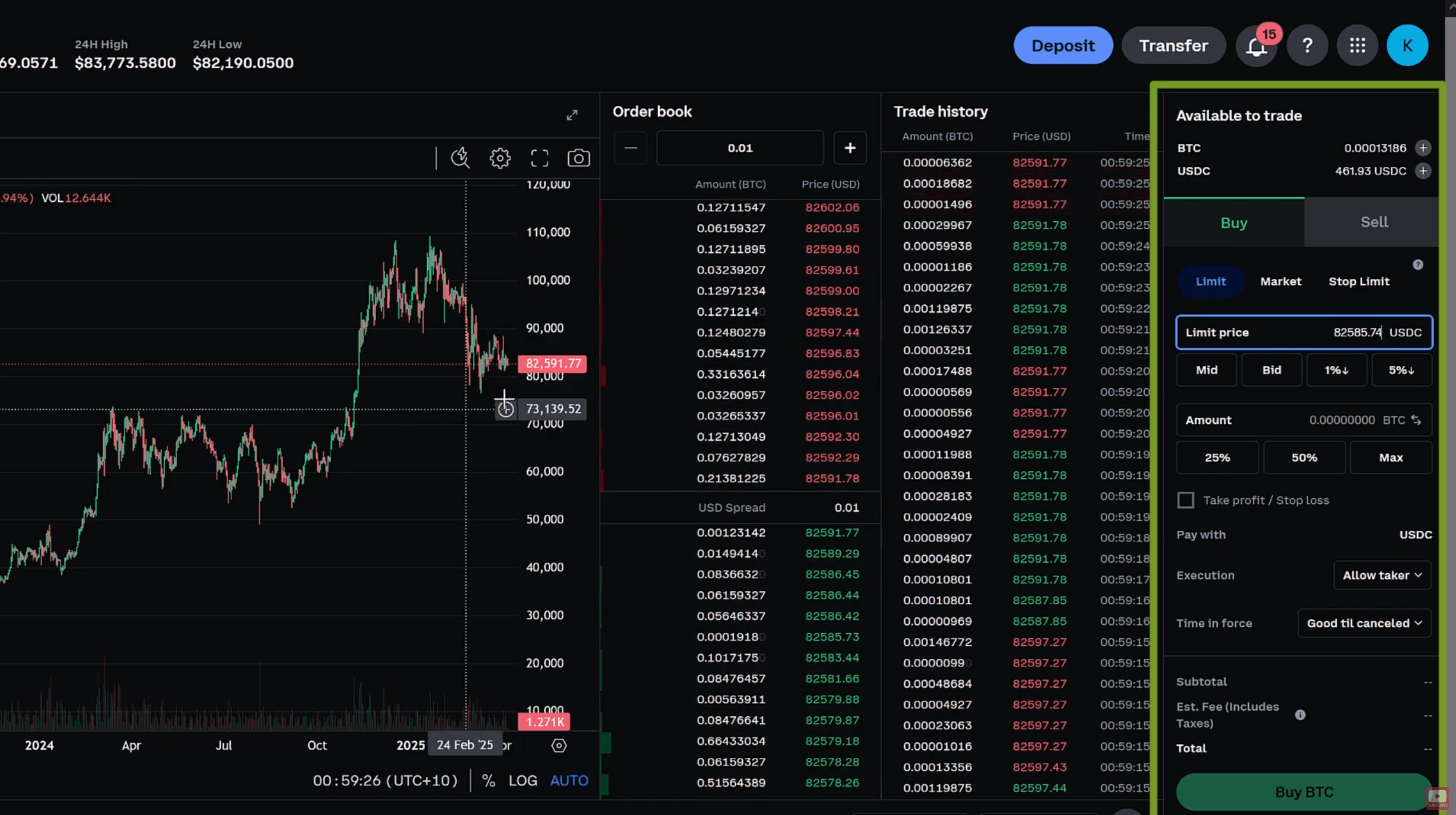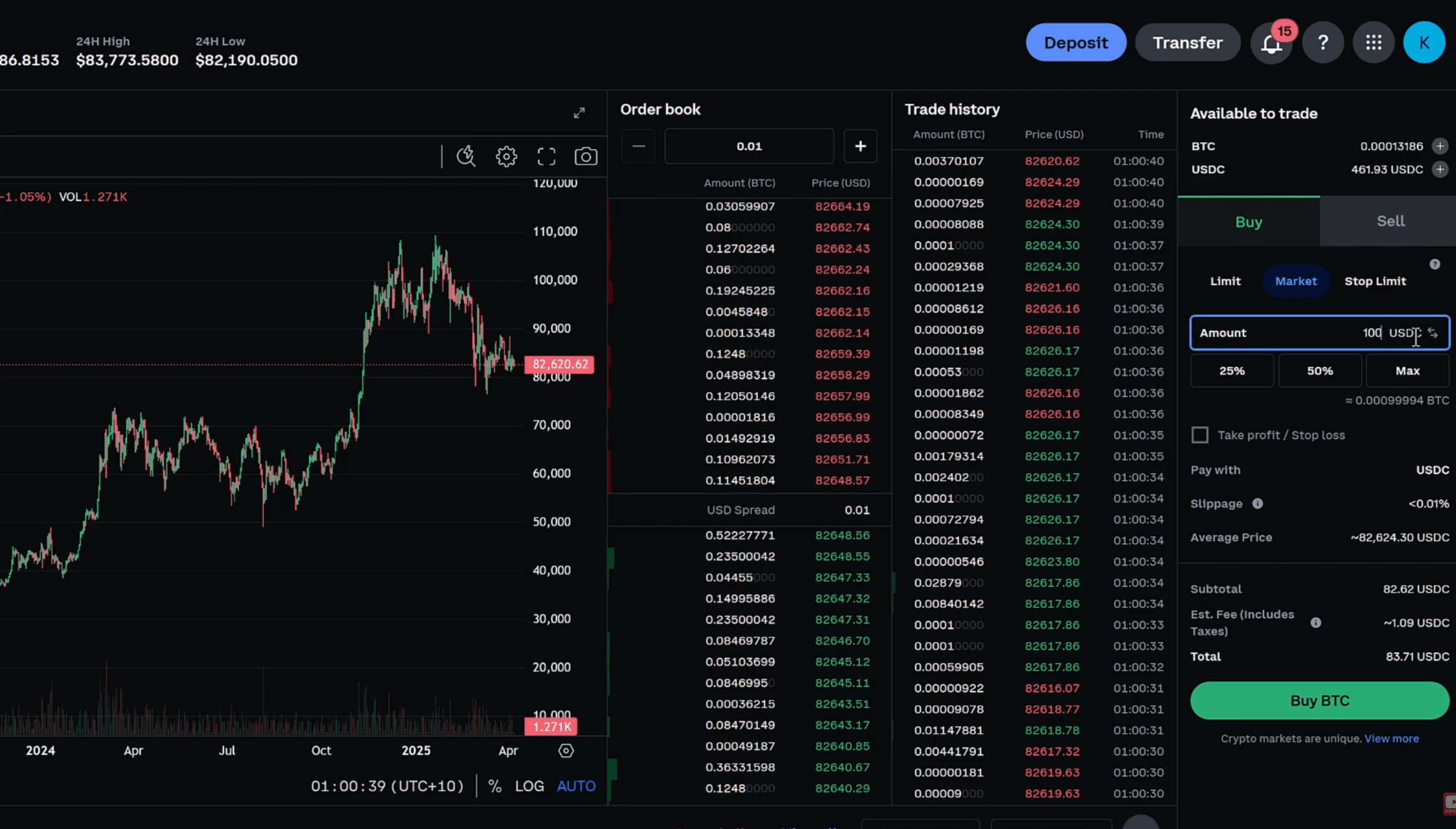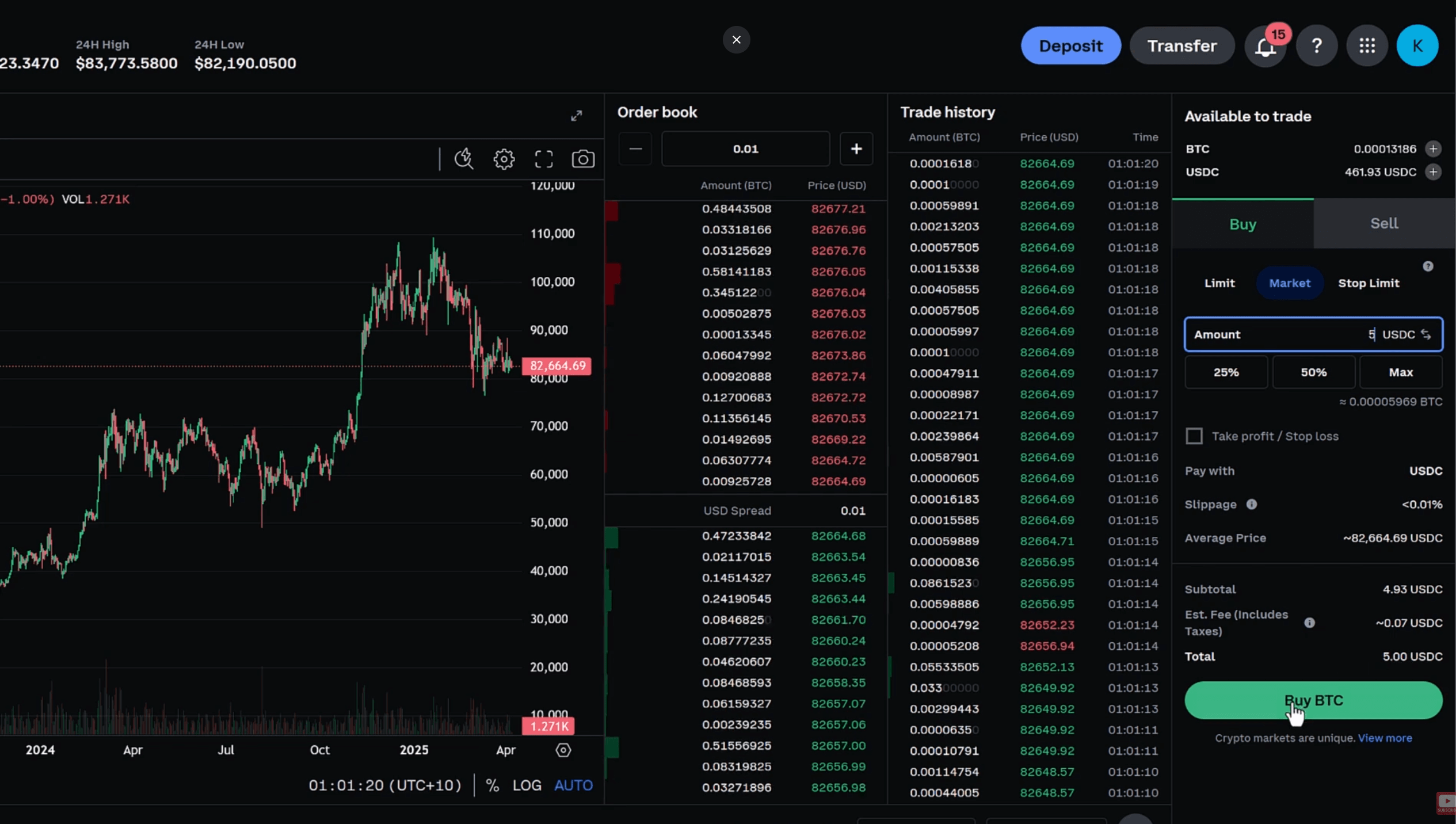 Choose trading pair: For beginners, start with common pairs like BTC/USD or ETH/USD.