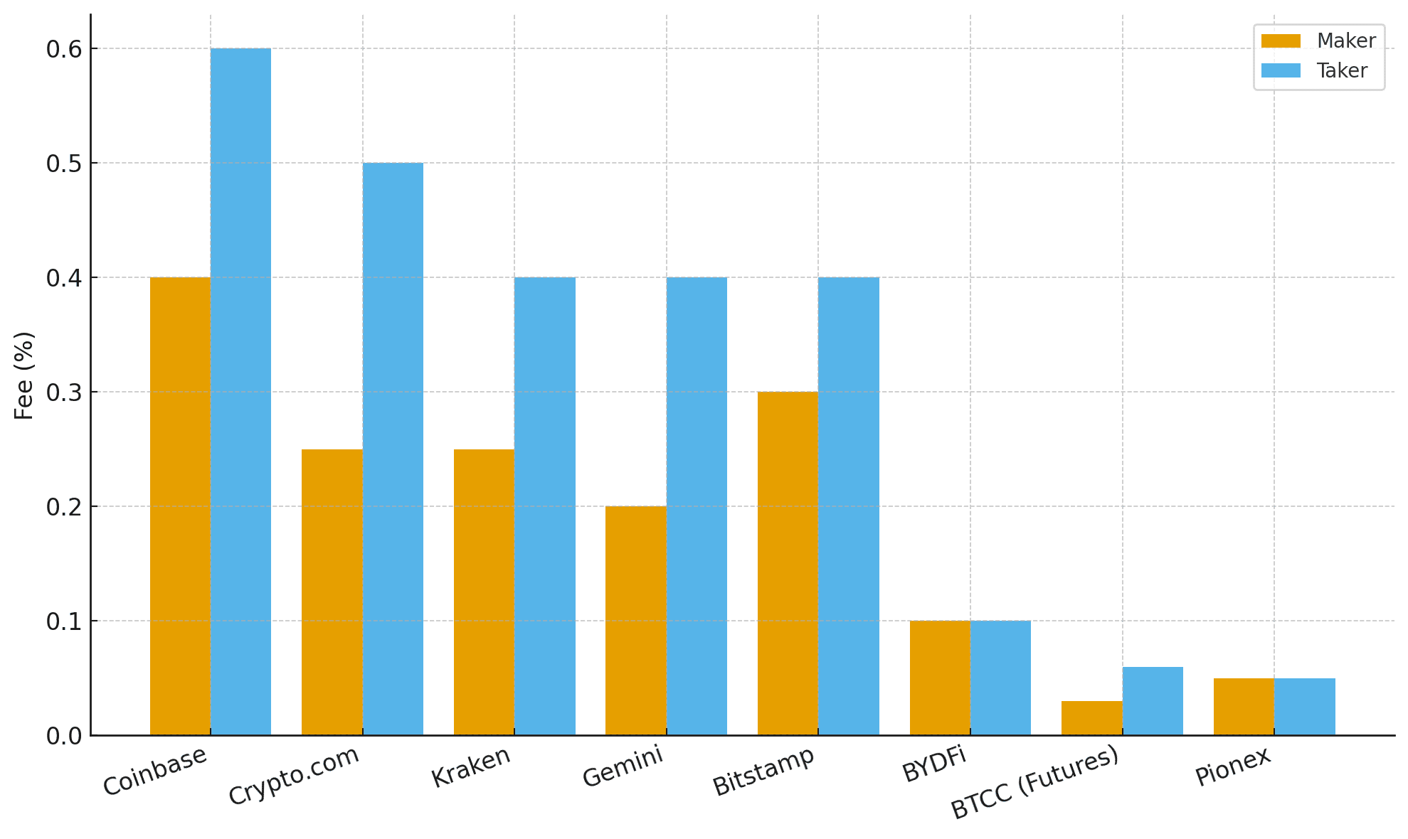 Base-Tier Maker vs. Taker Trading Fees Across Leading Crypto ExchangesNote: Robinhood and Uphold aren't included: