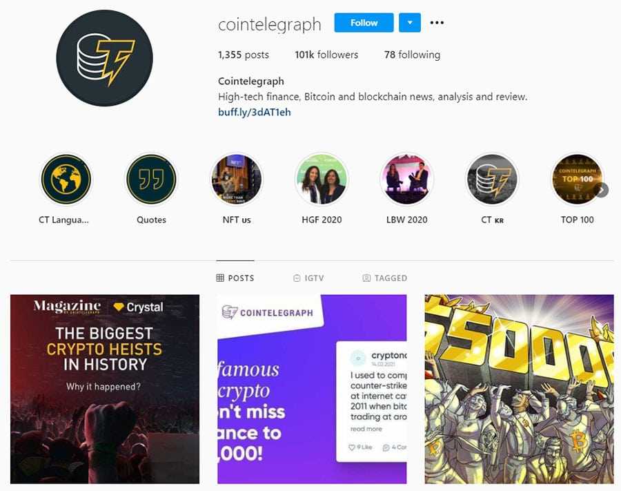 If you’re looking to make yourself an expert in crypto then the Cointelegraph site should be a regular stop on your daily journey into Cryptoville. Save the Insta page for the journey home.