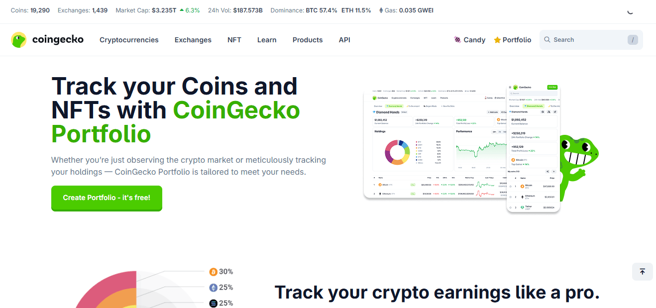 Simple, free portfolio layer on top of CoinGecko’s pricing database with more than ten thousand coins. You enter positions manually and get watchlists and alerts without connecting exchanges.