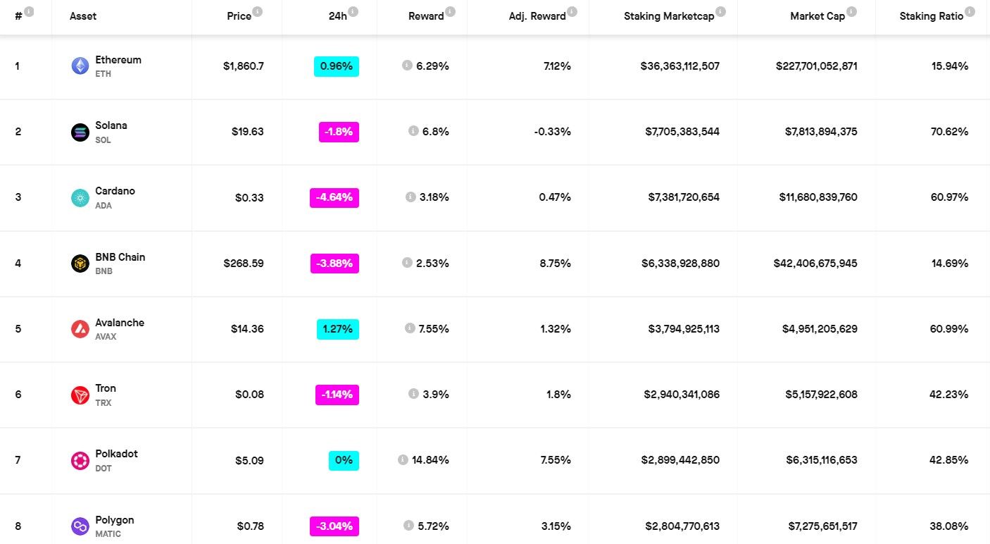 | Asset | Reward Average | Staking Marketcap | Marketcap |