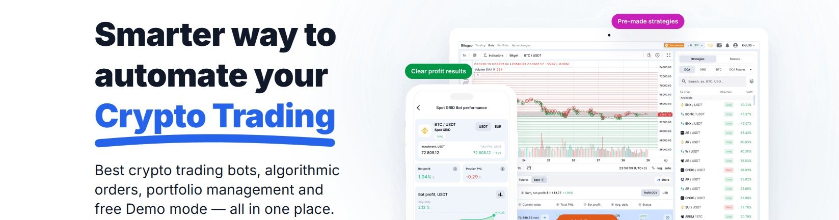 Bitsgap has earned its stripes as a powerful all-in-one crypto trading platform, especially for users looking to automate arbitrage across multiple exchanges. It offers both beginner-friendly tools and advanced automation features under one roof.