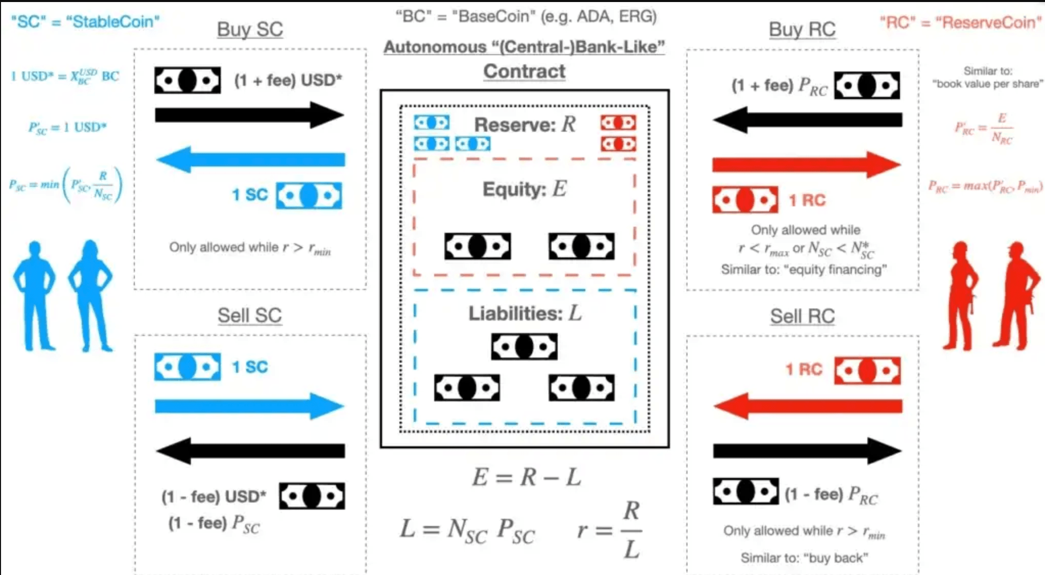 The whitepaper states that Djed “behaves like an autonomous bank that buys and sells stablecoins for a price in a range that is pegged to a target price”. It is also “the first stablecoin protocol where stability claims are precisely and mathematically stated and proven.”