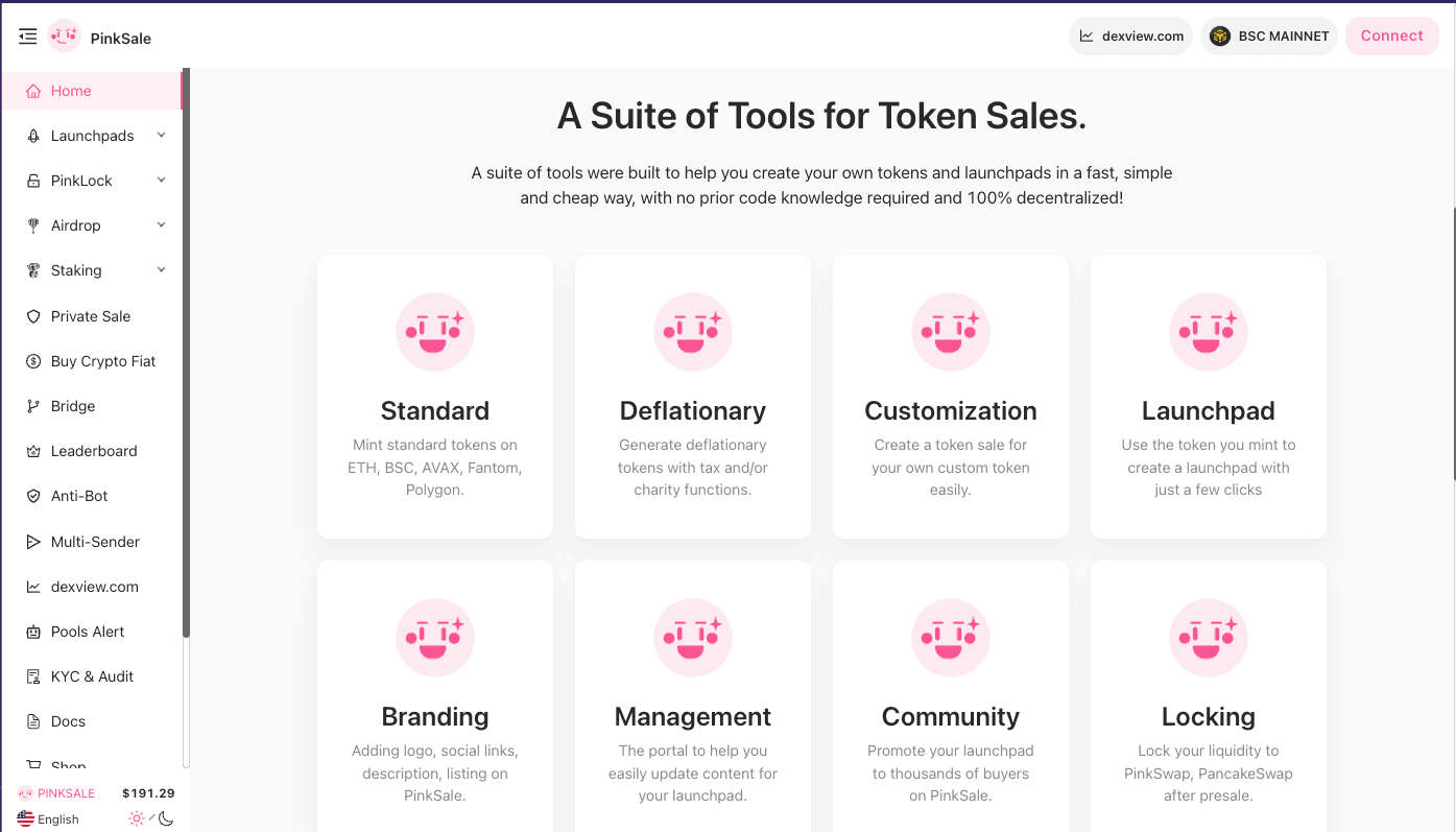 Other services offered by PinkSale include bridging capabilities, anti-bot program connected to the token's contract address, and multi-sending functionality to batch-send your new tokens to multiple addresses at once. With a slew of other supporting services available, Pinksale has almost all the ingredients you need to successfully launch your token not just on the BSC chain, but also Fantom, AVAX, Polygon, and ETH.