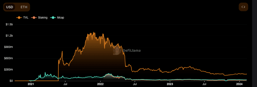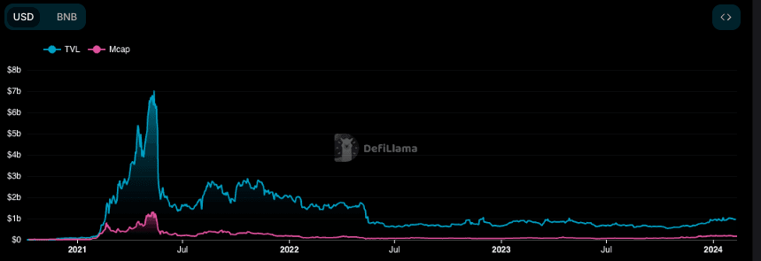 Out of the $308.48 million of TVL locked in STG, $55.07 million of it is in the Binance Smart Chain, which is the second-highest TVL contributor.
