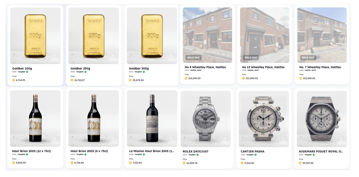 A Selection of Assets Available on the TNFT Marketplace. Image via TangiblePolyMarket