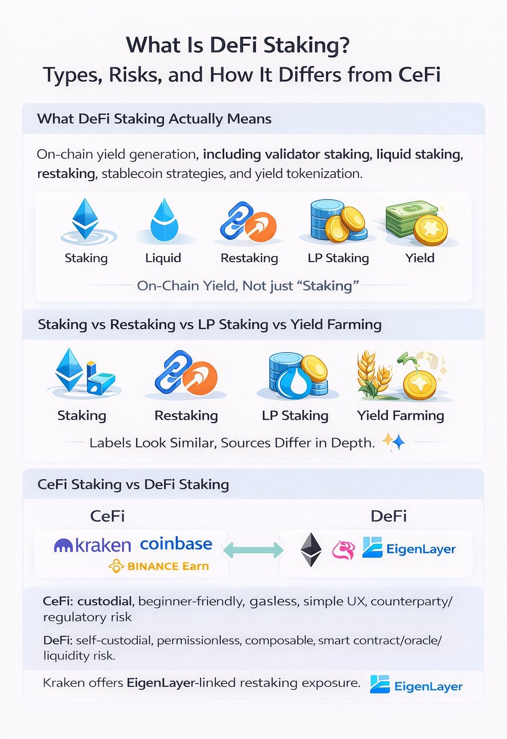 DeFi Staking Explained Through Simple Visual Categories and CeFi ComparisonWhat DeFi Staking Actually Means