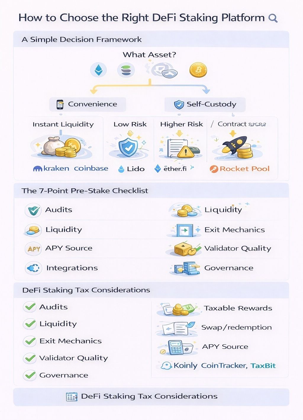 The best DeFi staking platform is not the one with the highest headline APY. It is the one that matches your asset, your liquidity needs, and the kind of risk you actually understand.