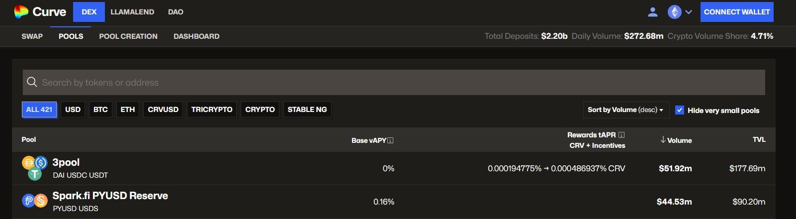 | Best Stablecoin Yields, Curve stables with Convex boosts, or Maker/Spark DSR | Curve stables 1% to 5%, DSR 2% to 6% | Low to Medium | Monitor de peg risk in stables |