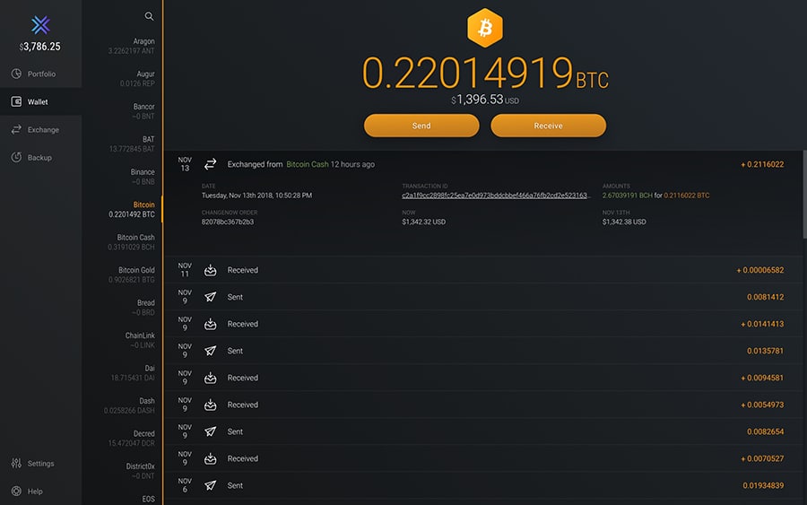 Exodus Desktop Wallet user interfaceExodus has versions available for Windows, Mac and Linux and gives you complete control over all of the digital assets you choose to store with it.