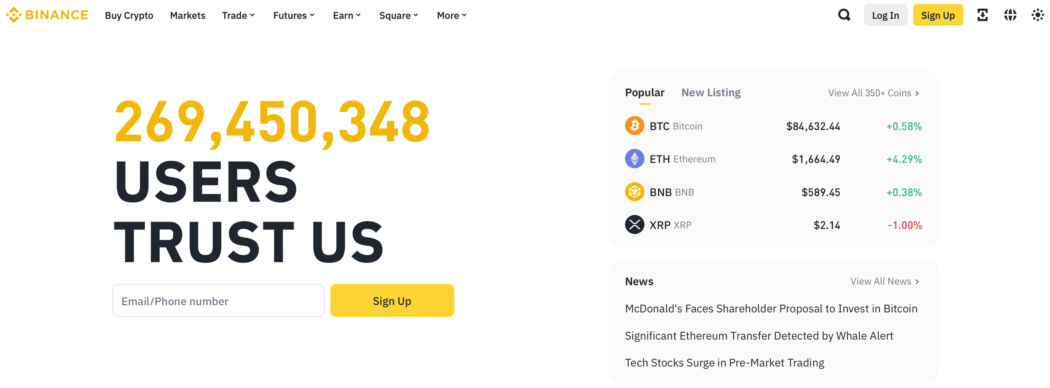 Binance Homepage. Image via BinancePros