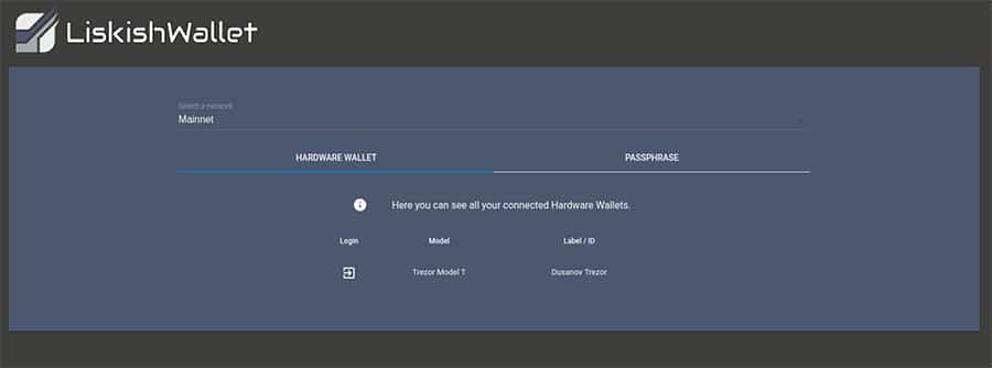 The LiskishWallet User Interface. Image Source: TrezorLike the Ledger Nano, the Trezor wallet will store your private keys in an offline environment and it will interact with the LiskishWallet through the USB connection. The Trezor is also a multi currency wallet. You are able to store up to 700 different coins including all of the ERC20 complex.