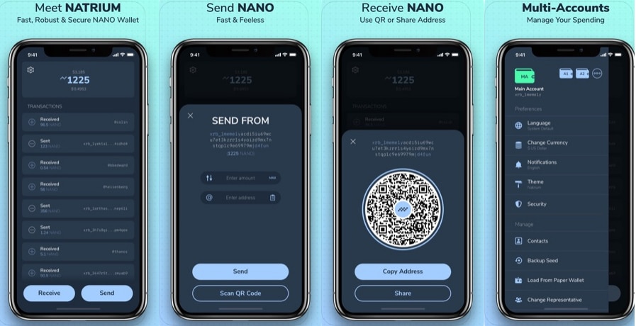 Natrium Mobile Wallet User Interface. Source: iTunesI also think that the user interface of the Natrium wallet looks much more clean and intuitive. Like the Nano Wallet Company mobile wallet, you can add a number of Nano addresses.