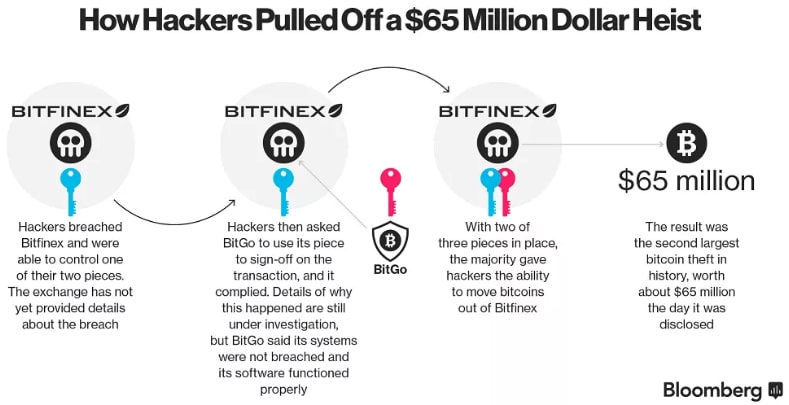 There were many questions as to how a hacker was able to exploit this configuration. Given that Bitfinex had been using a wallet solution by BitGo many people started pointing the finger at the wallet provider. However, the vulnerability seems to have been a combination of a number of factors which were unique to the Bitfinex setup.