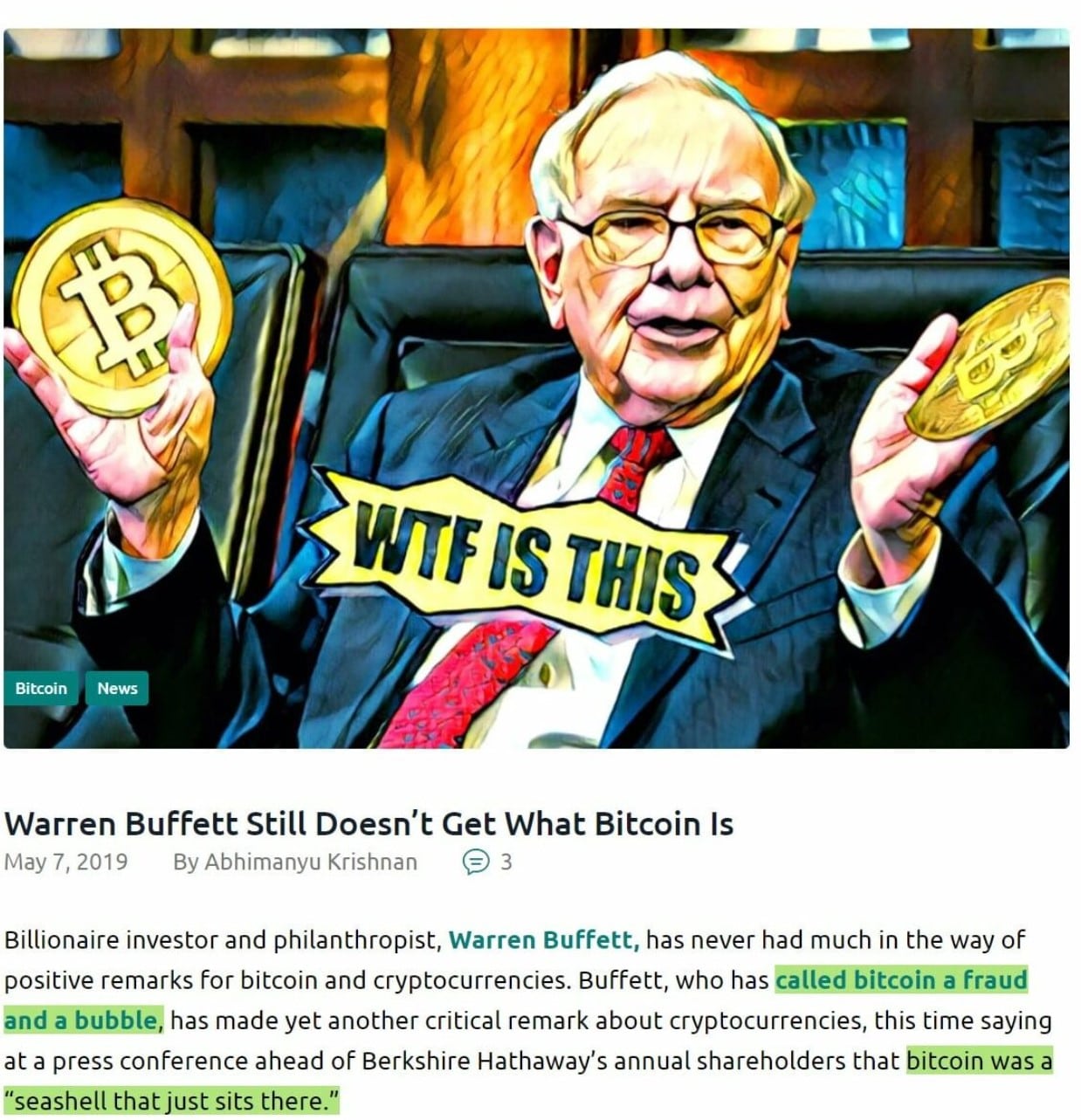 Buffett Has Nothing but Hateful Things to say About Bitcoin Image via Investinblockchain Institutions Want to Buy Low- It takes a long time for institutions and companies to move vast amounts of money around. The process can be cumbersome, especially if shareholders and clients need convincing, and the regulatory and legal framework behind shifting asset allocation of company treasuries into Bitcoin can be a big hurdle.