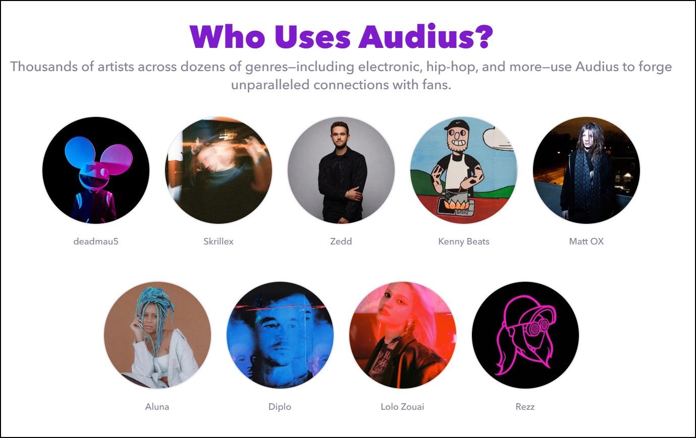 Many Well-Known Artists Are Using Audius | Image via AudiusThese examples highlight blockchain's role in reshaping the digital media and entertainment landscape. It provides traditional institutions with tools for better rights management and piracy control, while Web3 projects offer innovative ways for creators and consumers to interact, engage, and transact in the digital realm.