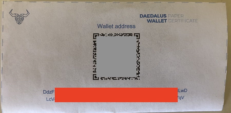 The Printed Paper Wallet from Daedalus. Image via IOHKThe paper wallet feature improves security as the printed certificate cannot be cached by the printer or compromised in some other way. Paper wallets can be restored and brought back online with Daedalus.