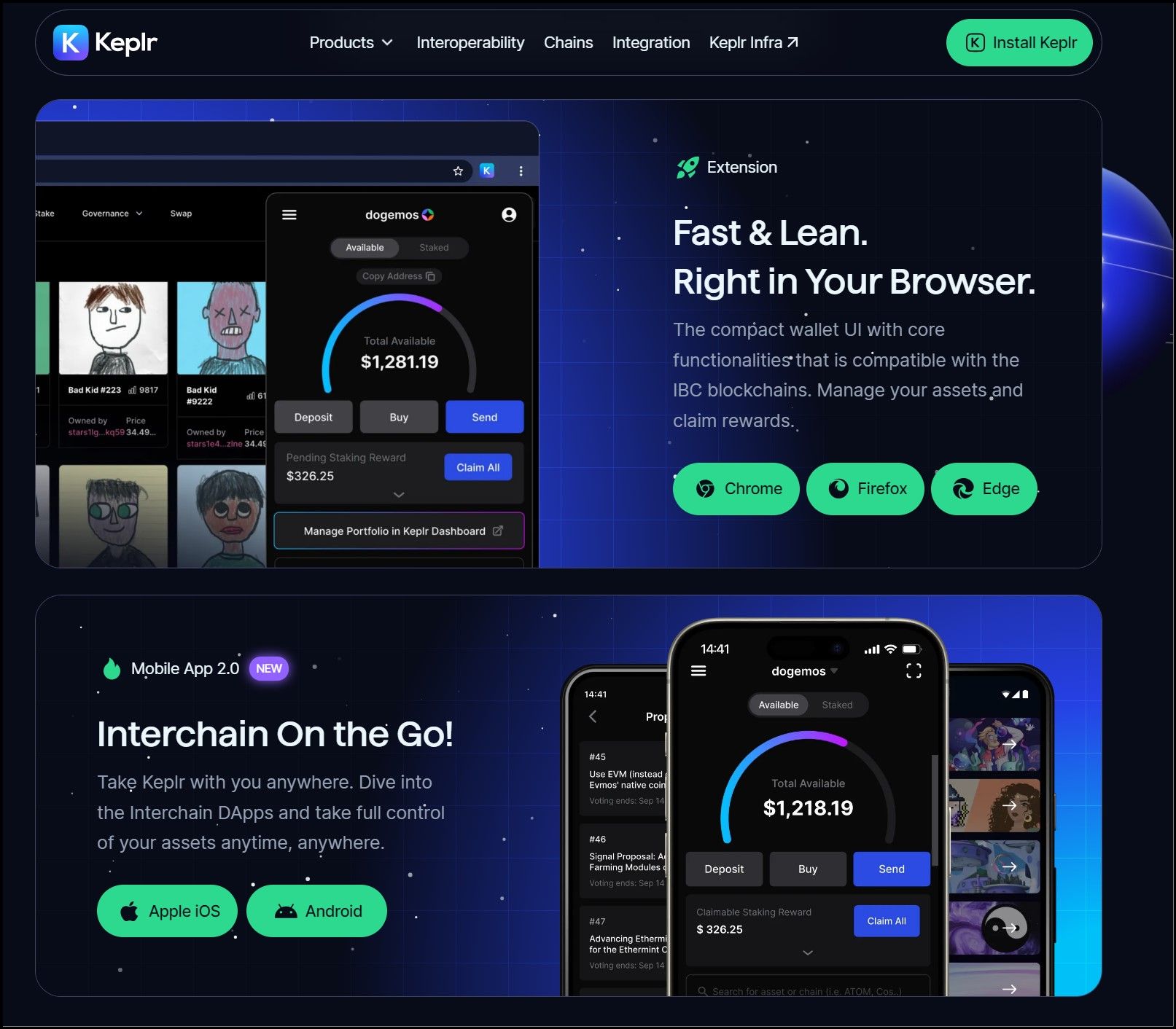 One of the wallet’s strengths is its robust portfolio management tools, which help users track and control their assets efficiently. Coupled with an integrated DApp browser, Leap Wallet ensures that users can safely and conveniently explore various decentralized applications without leaving the wallet's environment.