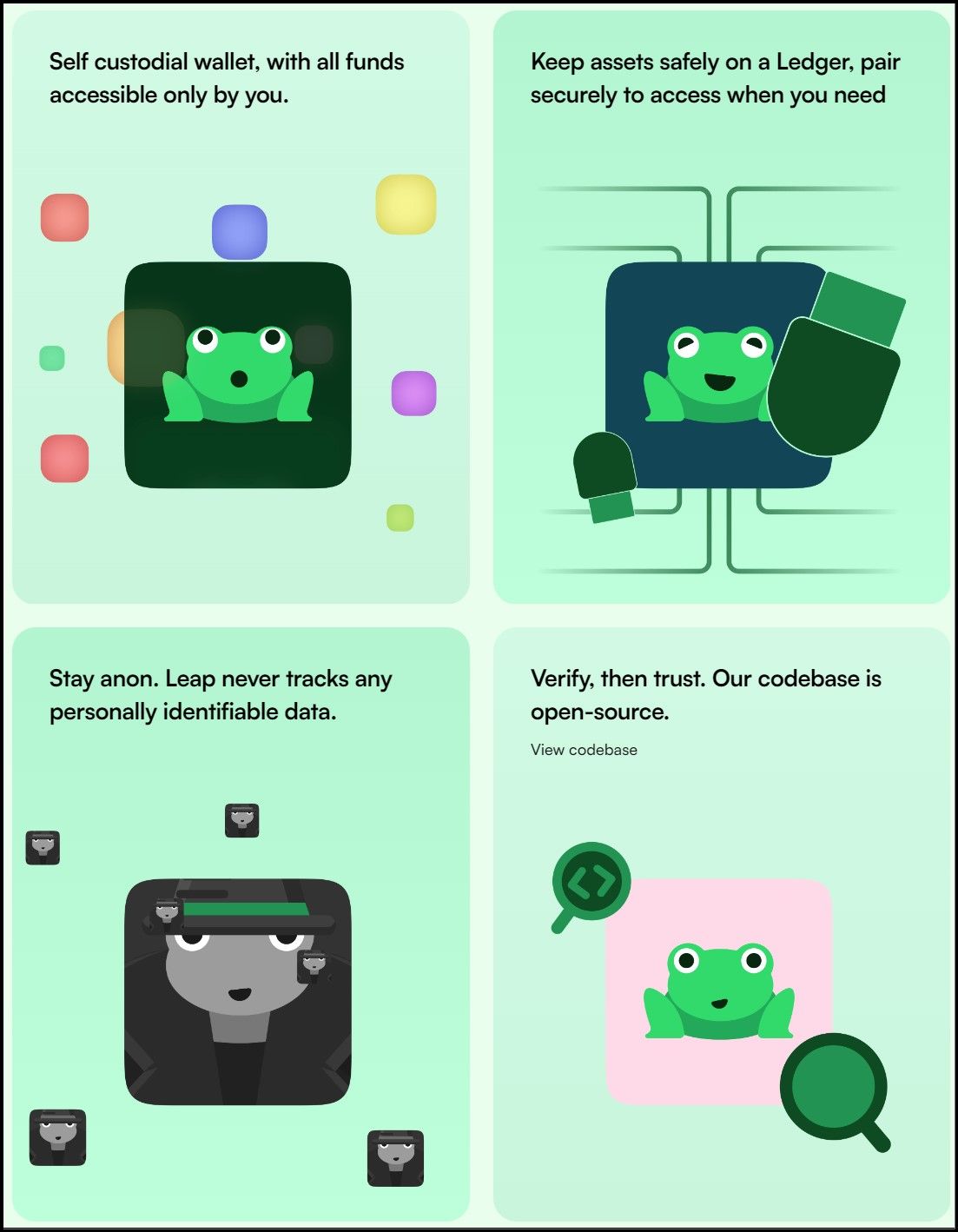 Overall, Leap Wallet is a powerful tool for users within the Cosmos ecosystem, known for its extensive functionality including multi-chain support, in-wallet staking and governance, and a user-friendly interface for both new and seasoned blockchain enthusiasts. Its commitment to security, combined with comprehensive support for various blockchain activities and asset management, makes it an excellent choice for anyone looking to leverage the full potential of the Cosmos network.