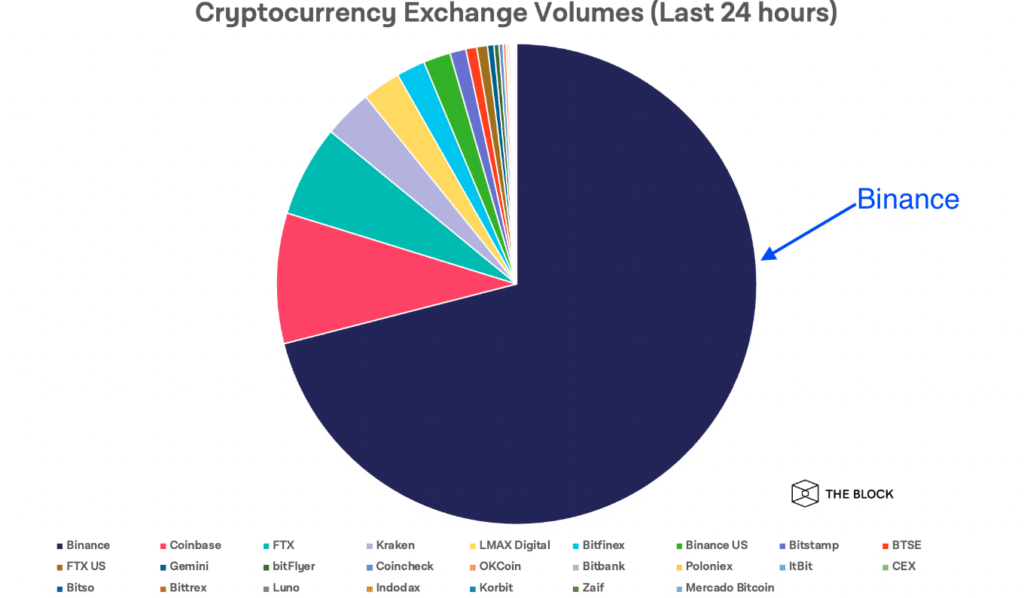 Since the collapse of FTX, Binance holds a huge monopoly in the crypto industry, enjoying over 71% of all exchange volume and running virtually unopposed as their largest competitor is no longer in the race.