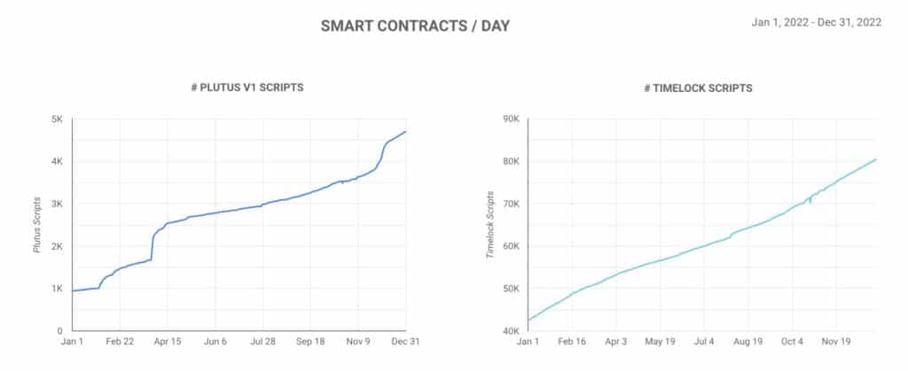 Cardano Led in Developer Activity in 2022. Image via SantimentCardano already enjoys a thriving ecosystem of over 1,000 DApps and over 4 million active addresses according to Messari. Despite the dull year from a price standpoint, smart contracts on Cardano surged an impressive 359% to a figure of 3,334, showing just how active development activity is.