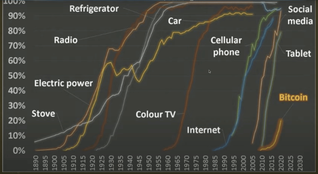 Here is an interesting display showing how Bitcoin adoption is outpacing nearly every technological invention pitted against.