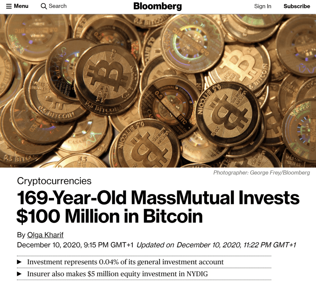 MassMutual Places $100 Million into Bitcoin. Headlines Like These are Now Common for Bitcoin. Image via BloombergThere are also entire countries and world governments now adopting Bitcoin and the United States SEC has recently recognized Bitcoin as a commodity, classifying it to similar assets like gold and oil. Bitcoin is the only digital asset that can boast this claim.