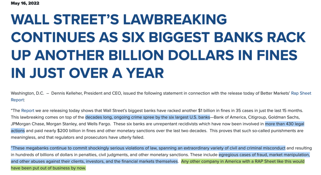 Image via BetterMarkets.orgAnd this is barely scratching the surface, we haven’t even gotten into full-blown scams like Madoff, gross instances of negligence like the Lehman Brothers, Enron, and FTX, or the irresponsible fiscal policies that resulted in the economic crash of 2008, and now the post-lockdown economic woes. All this gave rise to a desperately needed alternative.