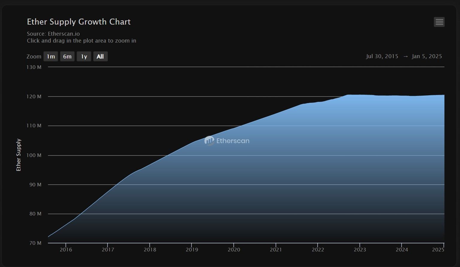 Ether supply has not deflated ever | Image via etherscanConclusion