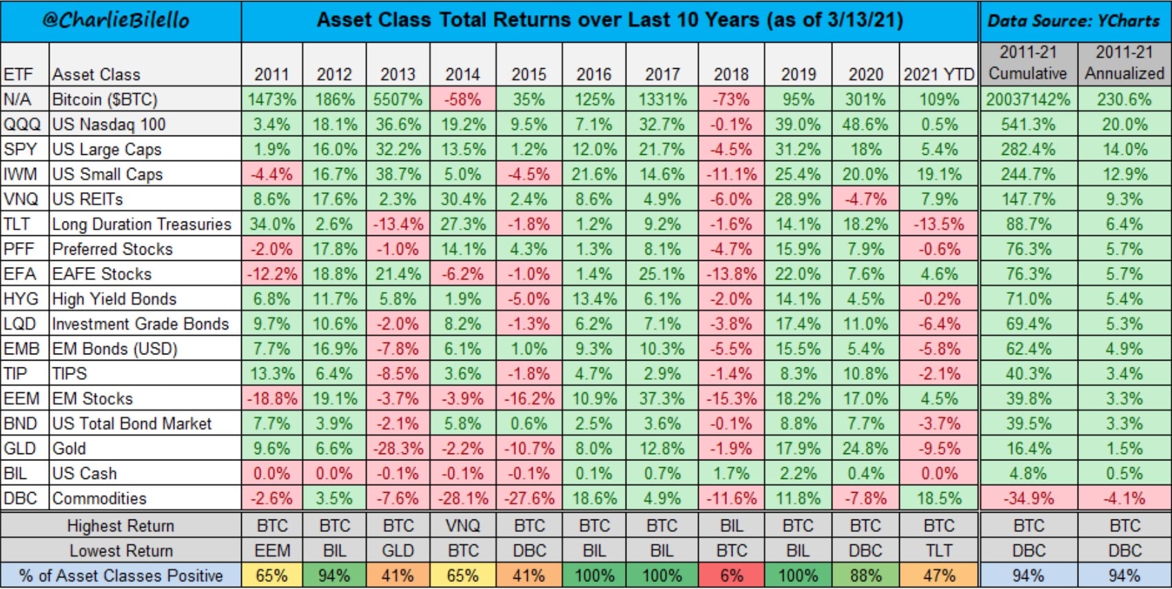 Bitcoin has Been the Best Performing Asset of the Decade Image via twitter/charliebilello