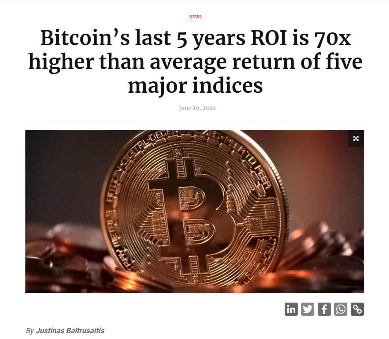 Bitcoin’s 5 Year ROI has Exceeded Major Indices by 70x Image via ffnews Ethereum