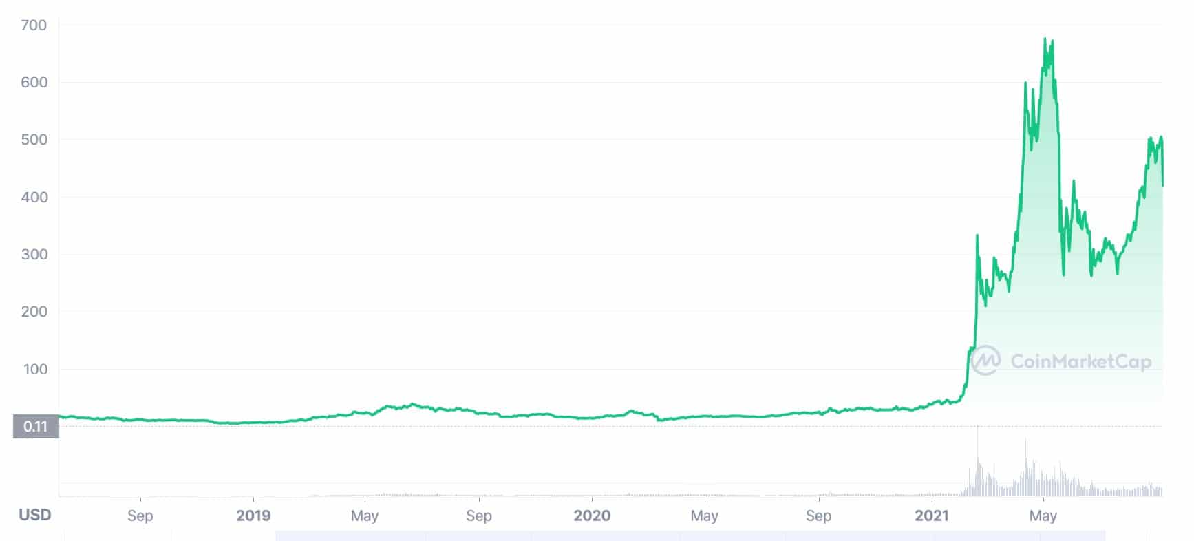 Cryptocurrency exchange utility tokens such as Binance’s BNB token and Crypto.com’s CRO token have also seen impressive gains over the years with Binance’s BNB token comfortably sitting among the top 5 coins for most of the year. Created in 2017, BNB was initially offered to the public for only $0.15 per coin and has seen an astronomical rise to its $690 dollars per coin all-time high this year.