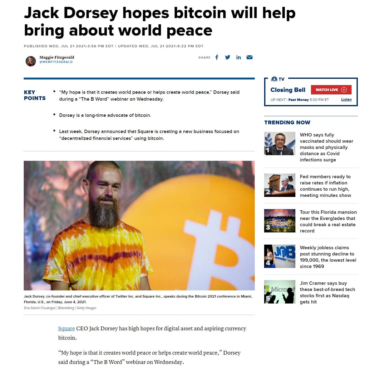 Twitter’s Jack Dorsey Believes Crypto can Make the World a Better Place Image via CNBC We have a plethora of big-name investors and firms backing this innovative tech as well such as Cathy Wood of Ark Invest who is pushing for a Bitcoin ETF in the States and famous businessman and entrepreneur Kevin O’Leary who is notable as he was a crypto critic but now supports the asset as he learned more about the underlying tech and use cases.