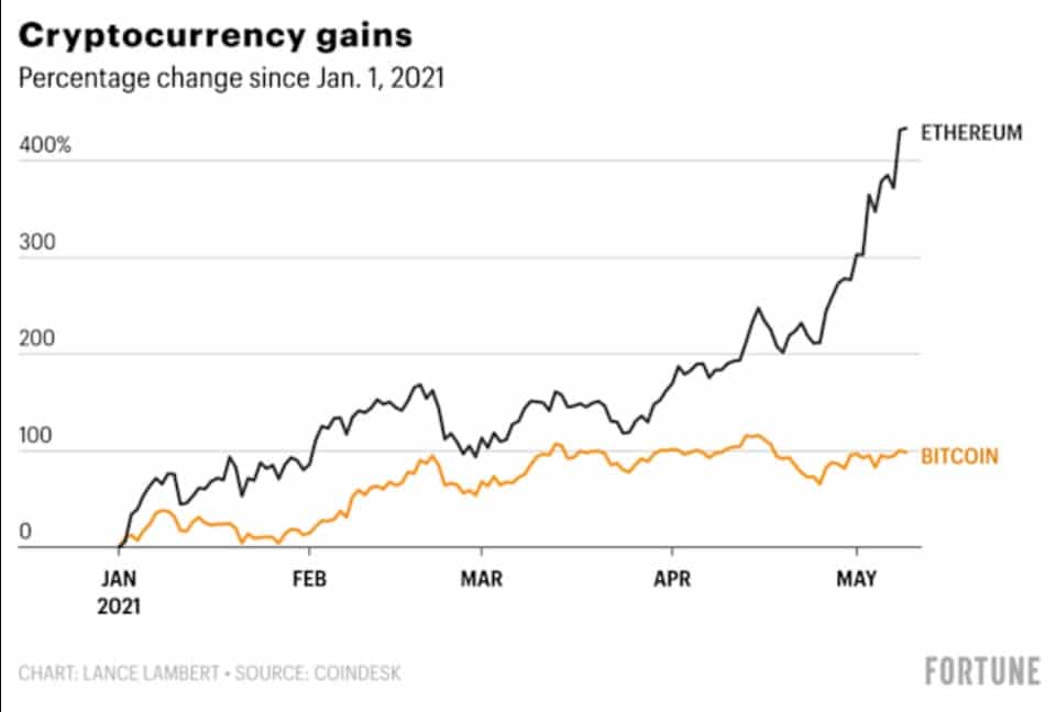 - Ethereum - 476% YTD ROI reaching an ATH of $4,800