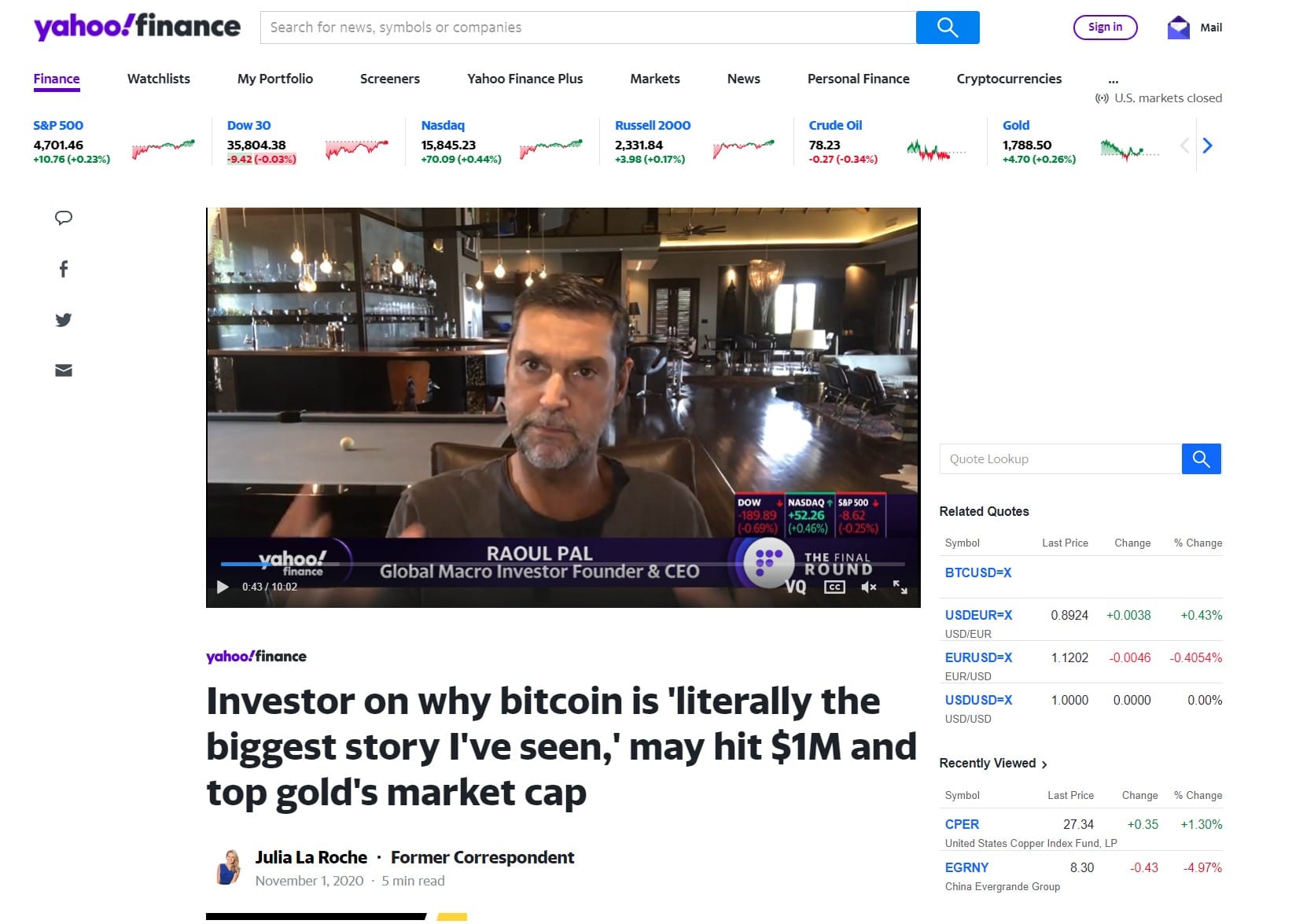 Raoul Pal Speaks to Yahoo about the Future Potential and Impact of the Crypto Markets Image via Yahoo Finance Performance of Top 10 Cryptos vs S&P 500 in 2021