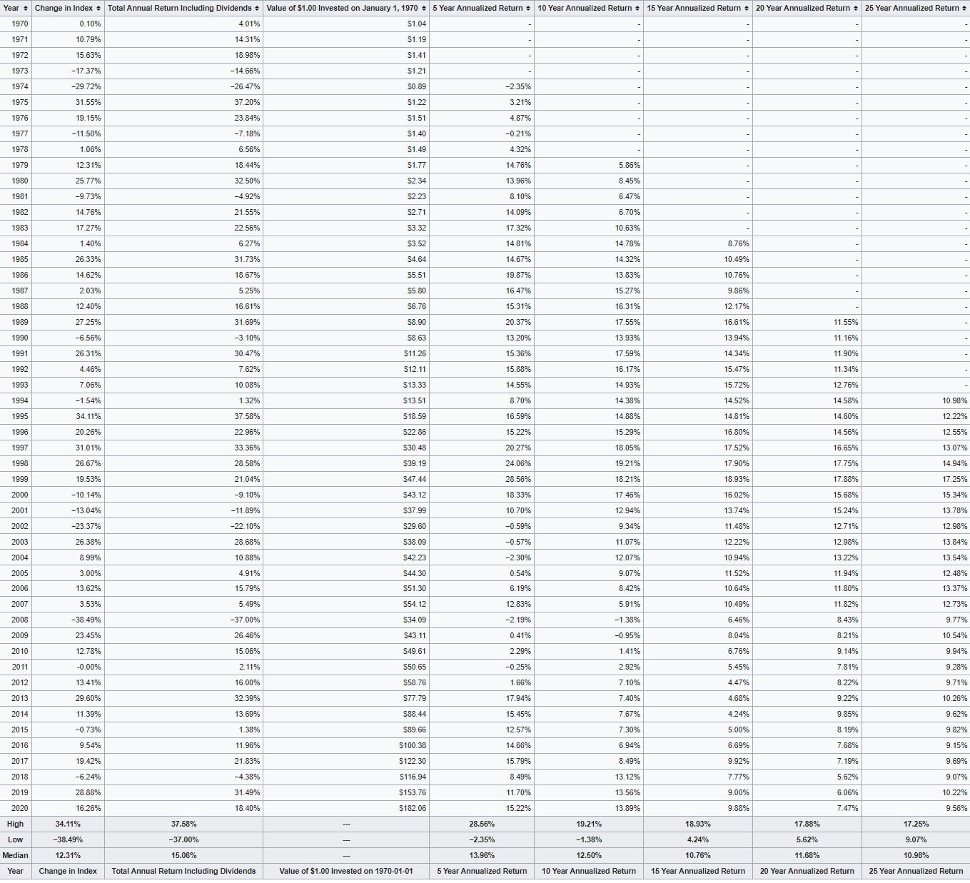 The S&P 500 Performance since 1970 Image via Wikipedia I know many crypto enthusiasts are thinking, “huh? That’s it?” most of us in the crypto space don’t even get out of bed for 10% and chase returns that were once thought impossible by investors just ten years ago with the introduction of small-cap altcoins like Axie Infinity which has rewarded investors with an unconceivable 71,910.71% in one year (certainly no longer considered a small-cap altcoin!).