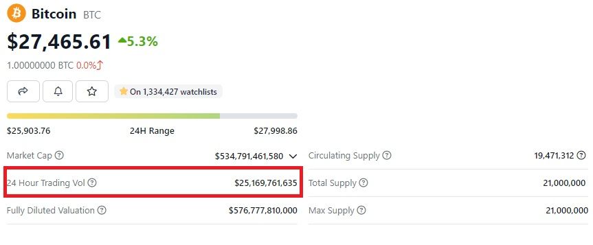 Bitcoin is a Highly Liquid Digital Asset. Image via CoinGeckoMarket volume assesses the trading activity of a particular asset. A high trading volume means there is a higher interest in a particular asset, which leads to higher liquidity. Bitcoin’s 24-hour trading volume was over $25 billion, suggesting it is a highly liquid asset.