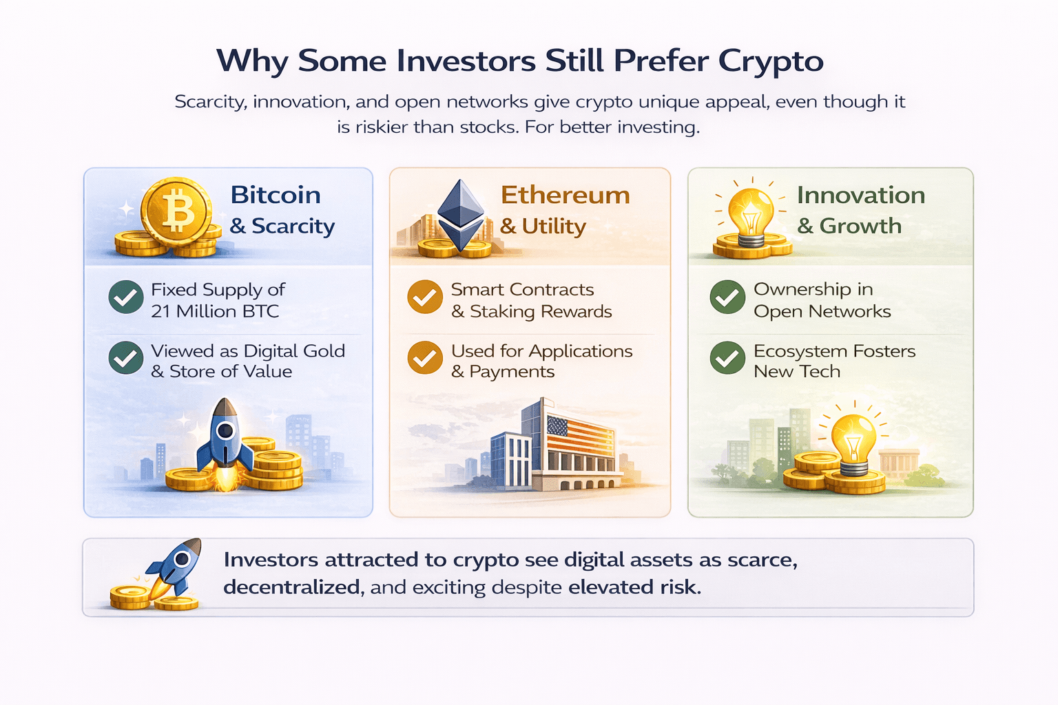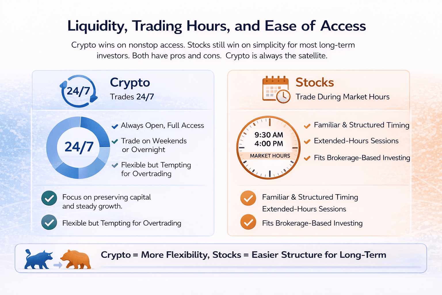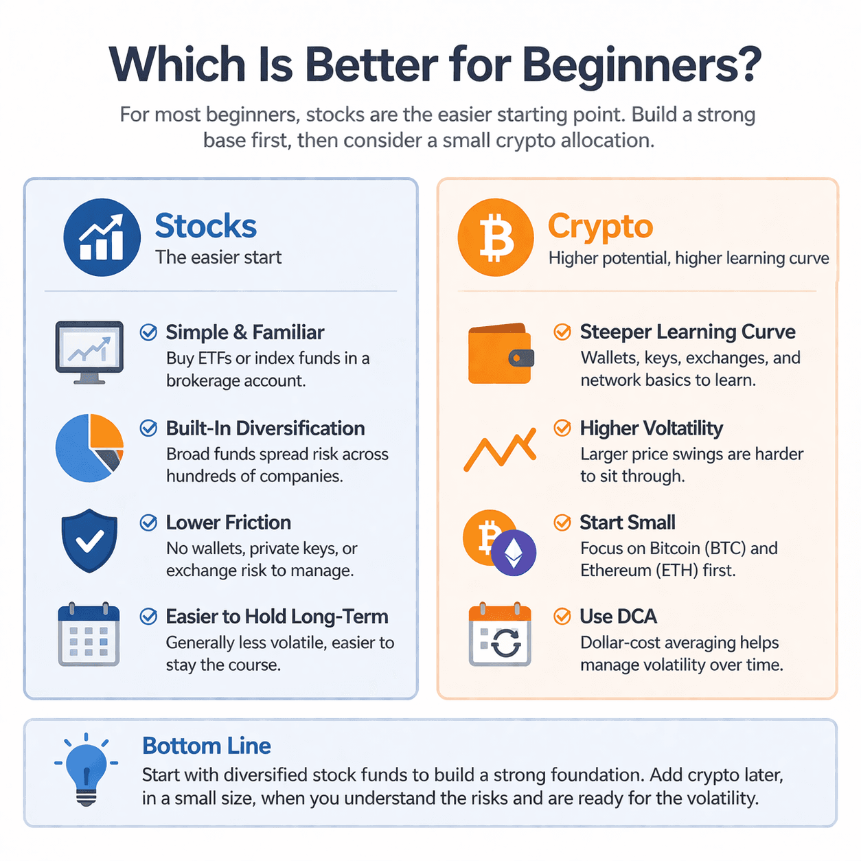 WINNER: Stocks. Crypto may be making improvements from an accessibility perspective, but stocks stand victorious here.