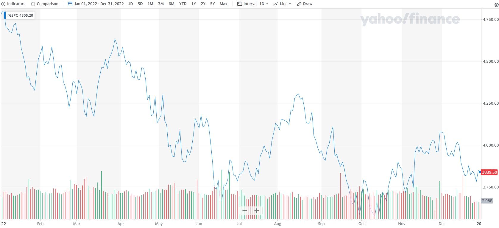 The S&P 500 Posted Negative Returns in 2022. Image via Yahoo FinanceYou’d think 2022 was S&P 500’s worst year, but that was nothing compared to 2008. As the housing market crisis reached its tipping point, the index plunged 38.49% for the year.