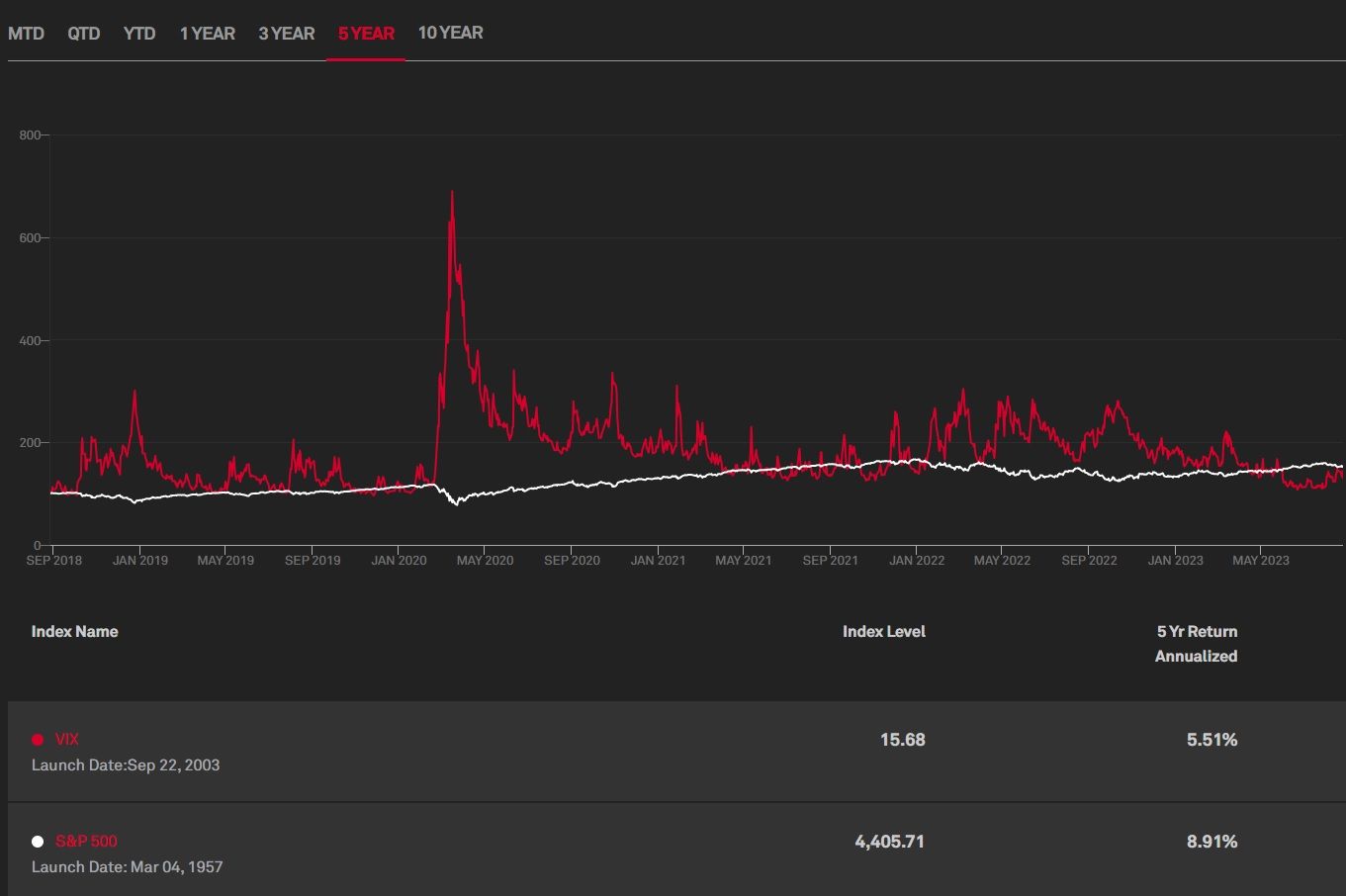 Since VIX reaches its highest levels when the stock market is jittery, the index is also referred to as the “fear” gauge. For example, in March 2020 when COVID-19 disrupted the world, VIX reached an all-time high of 82.69.